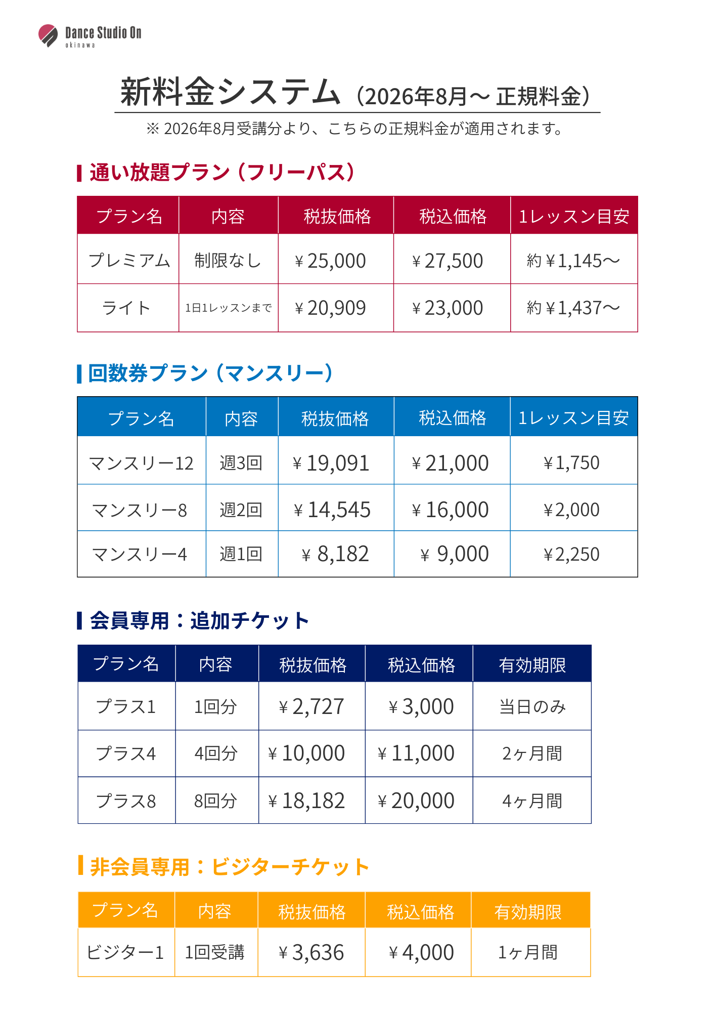 8月よりこちらの料金となります👇