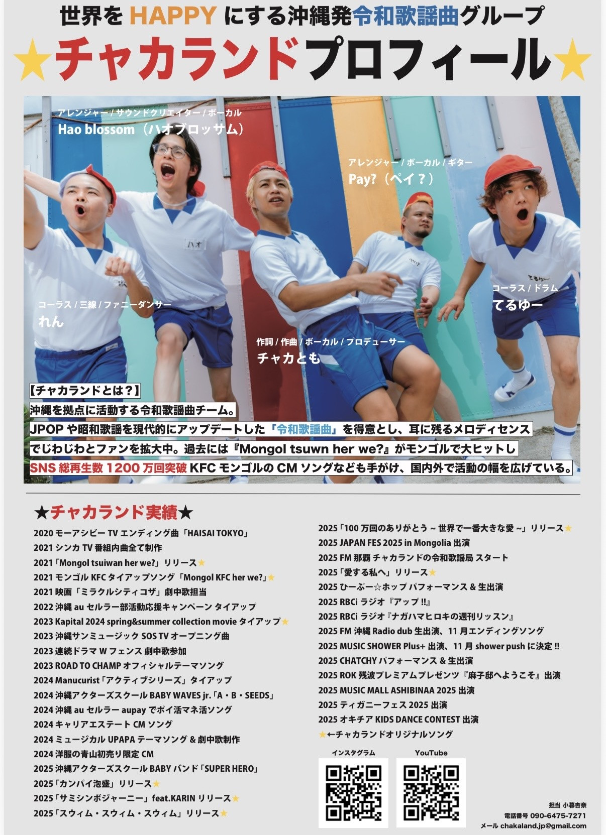 なんと今回、「世界をHAPPYにする沖縄発 令和歌謡曲グループ」として大活躍中の「チャカランド」さんをお招きし、そのバックダンサーとして皆さんにステージに立ってもらう企画が決定しました!🔥